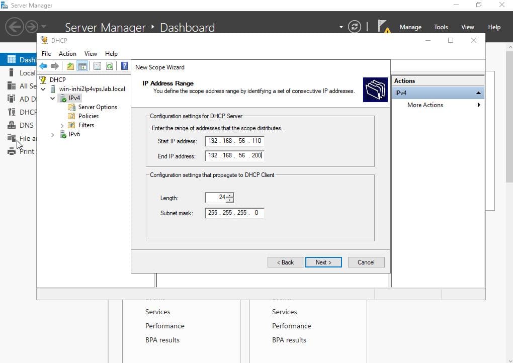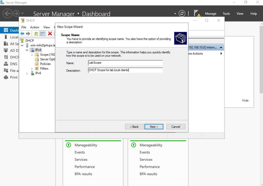 dhcpmgmt.msc) - Created a new IPv4 Scope called