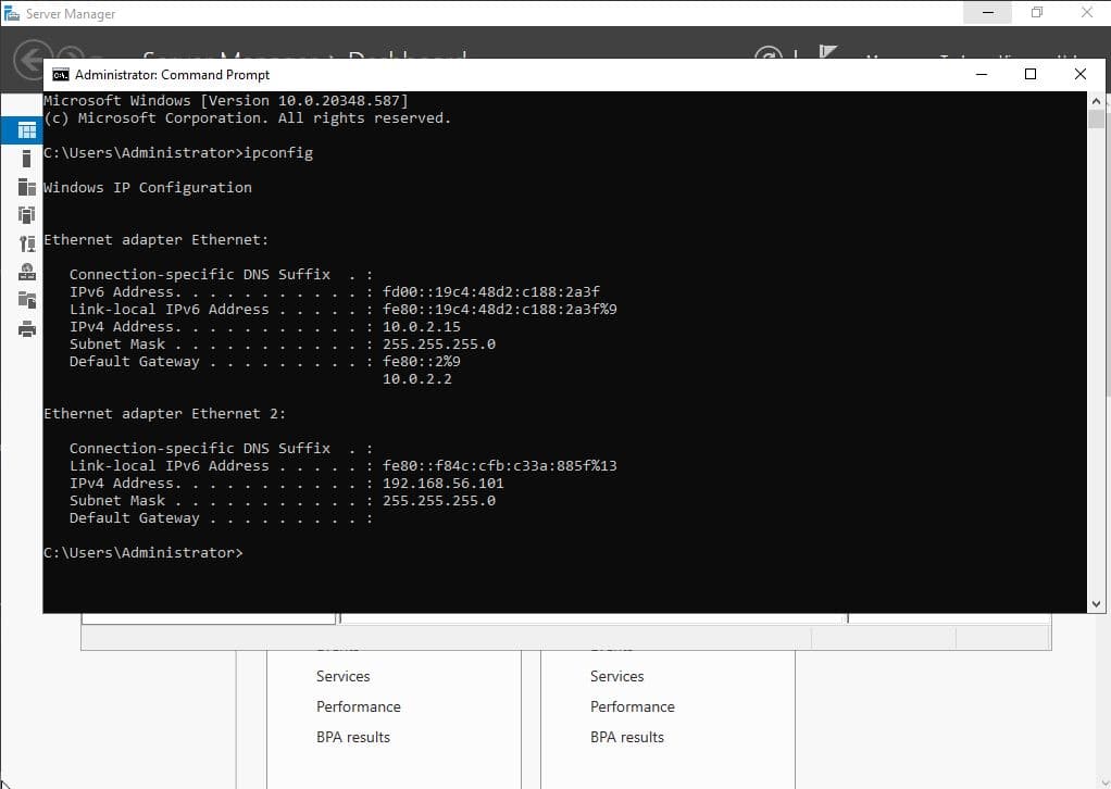 ipconfigdue to VM adapters:- NAT Adapter: 10.0.2.15