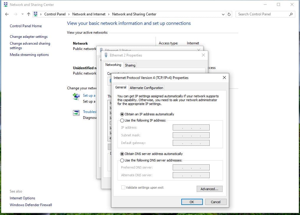 | Configuring Windows client to automatically receive IP and DNS settings |