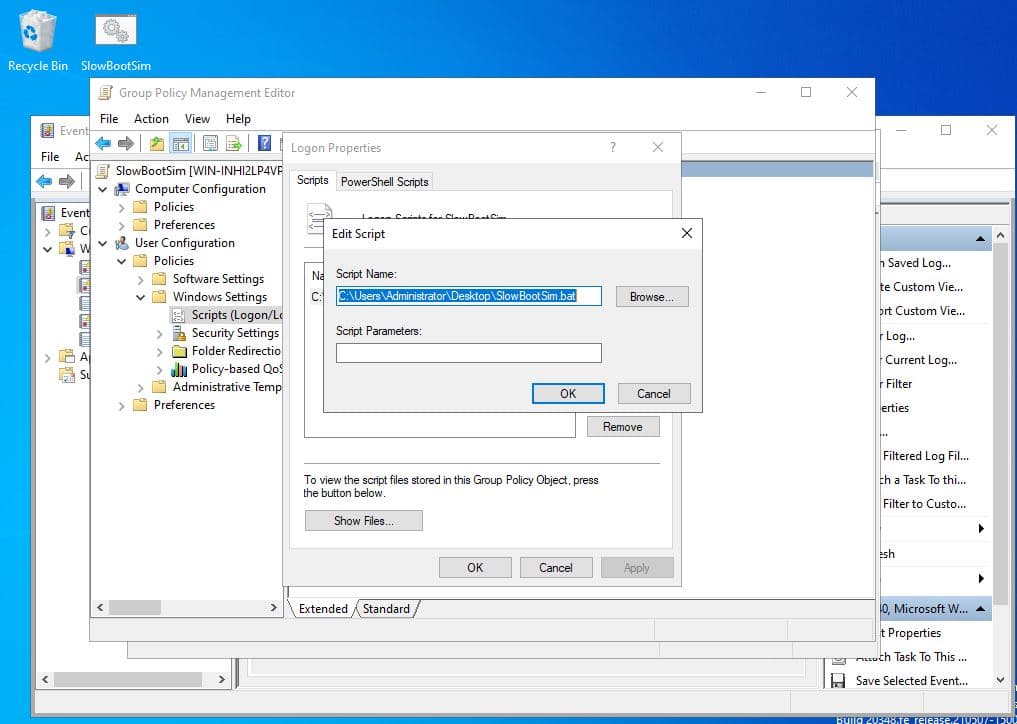 This lab demonstrates how to use Group Policy to execute a startup script for a user in an Active Directory environment. The script is designed to simulate a slow boot by launching multiple applications on login, not a practical script in an enterprise environment, and is just used for example.