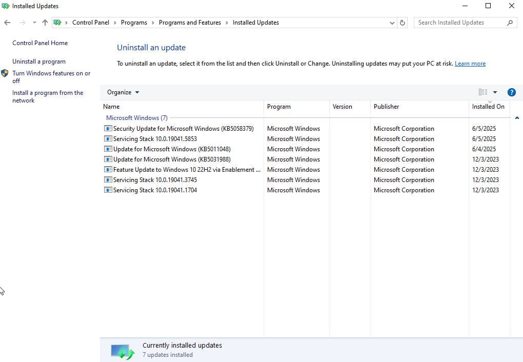 - Verified the installation by checking the "Installed on" date and the name of the update