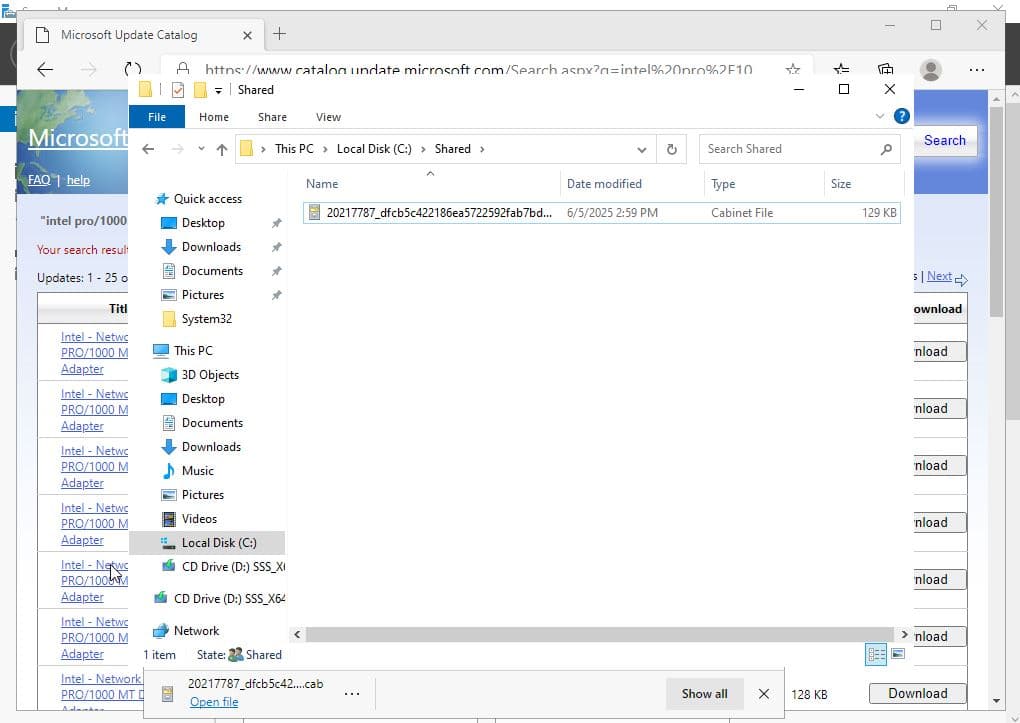 - Copied the .cabfile toC:\Users\j.doe\Downloads, renamed it toIntelNicDriver