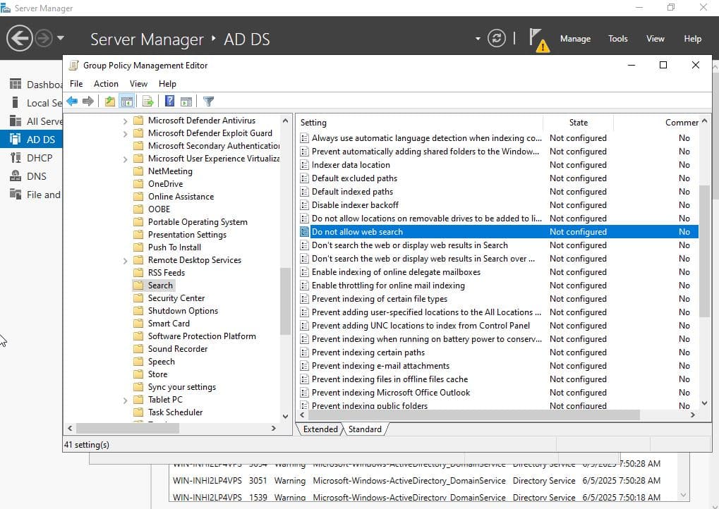 | Disabling non-essential Windows components (e.g., Windows Search) via GPO |