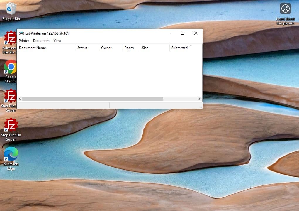 This lab demonstrates how to simulate a shared network printer setup in a Windows Server domain environment. A virtual printer is manually installed on the server and shared with a client machine using a simulated IP.