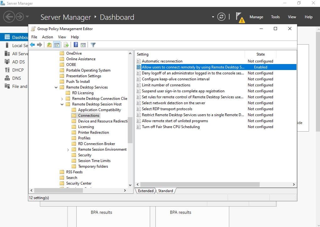 | Enabling RDP access via Administrative Templates in Group Policy |