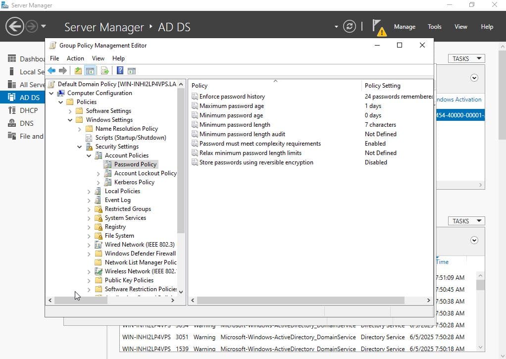 This lab simulates a domain user's password expiration by configuring the maximum password age via Group Policy in a Windows Server environment. It demonstrates how Active Directory enforces password policies and how clients respond when credentials expire.